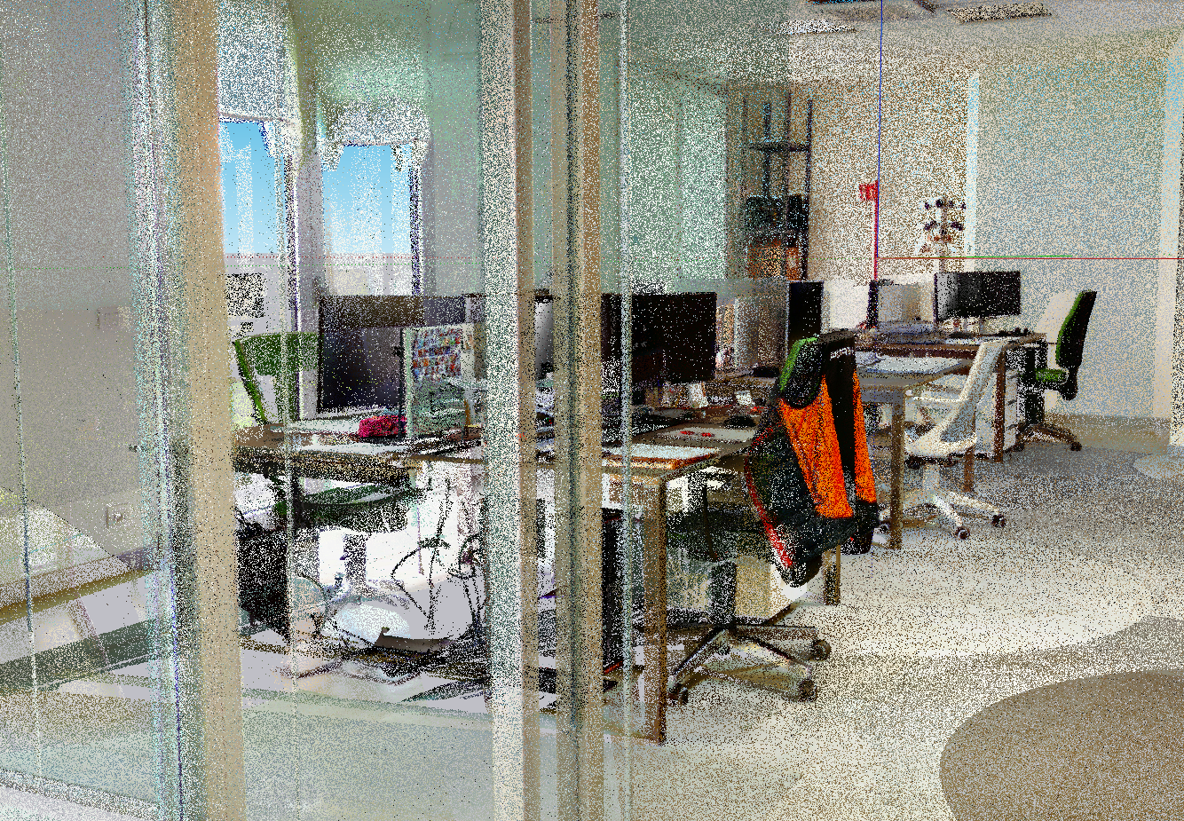 In questo caso il rilievo è stato effettuato su scala minore. E’ stata creata così la nuvola di punti di un ufficio in modo da poter visualizzare ogni singola stanza e confrontarla con il progetto corrente.