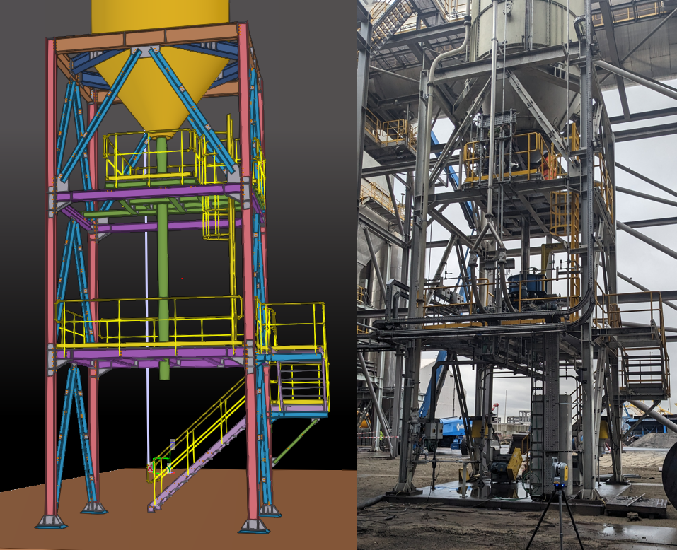 Rilievo Laser Scanner Cliente: BoldrocchiPeso: 400 Tonn.Ambito: Rilievo in cantiere con l’utilizzo del laser scanner 3D, ottimizzazione della nuvola di punti con il software Realworks e aggiornamento del modello 3D Tekla.